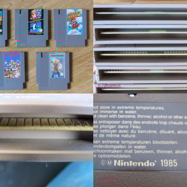 J'ai nettoyé et graissé les points de contact des cartouches à l'intérieur de la console, ainsi que les points de contact des 5 cartouches. Les articles sont en état d'usage (occasion). Il n'y a pas de fissures dans le plastique ou de morceaux de la console, des manettes, du zapper, des cartouches. Les autocollants sur les cartouches sont peu usés. Les connecteurs et les câbles ne sont pas endommagés. Pour des objets d'une trentaine d'années, c'est agréable et tout permet de revivre les jeux de ses années d'enfance.